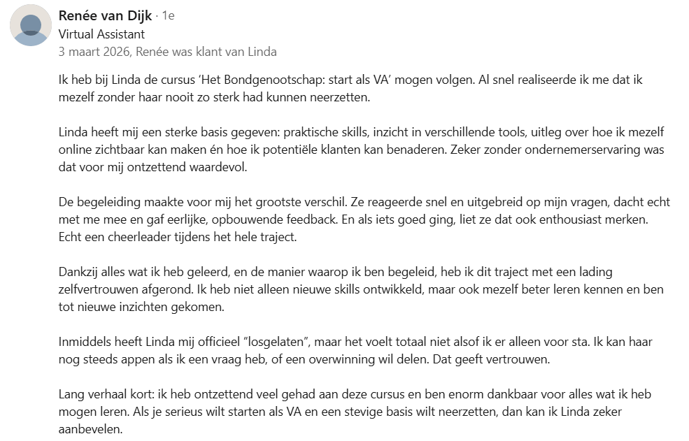 En precies dát is wat ik met Het Bondgenootschap – Start als VA bied.